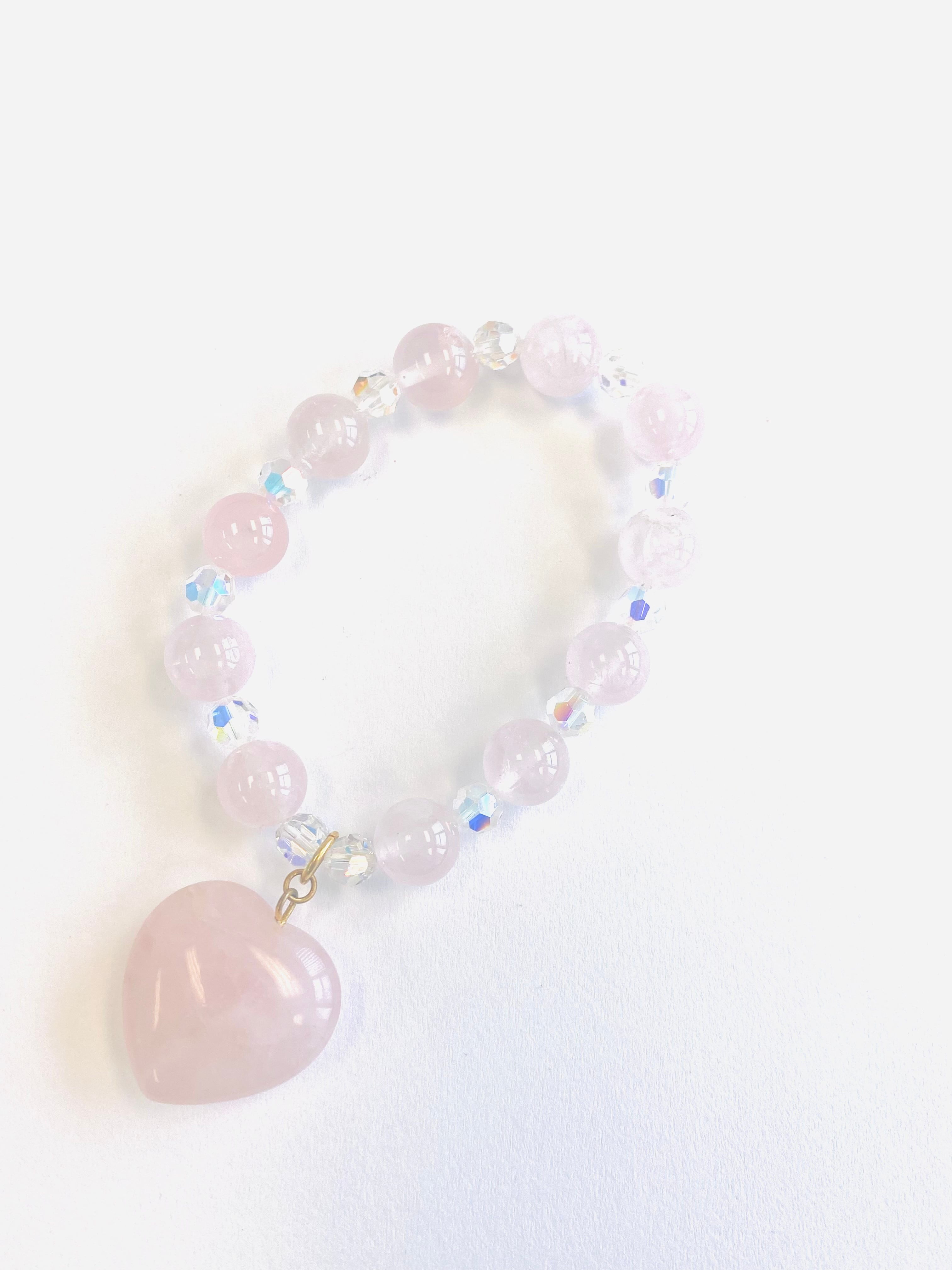 【あなたのアファメーションジュエリー~LOVE運、愛のパワーを秘めた、ローズクォーツのハートのチャーム付きのブレスレット~】